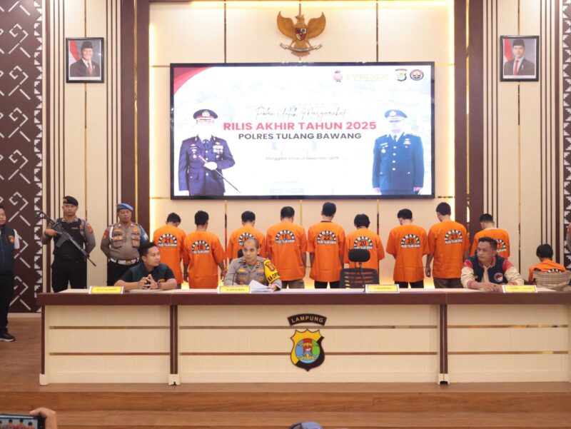 Tulang Bawang harianposting.com– Akhir tahun ditutup dengan gebrakan besar. Polres Tulang Bawang menggelar Konferensi Pers Akhir Tahun 2025 yang mengungkap fakta mengejutkan: 153 kasus tindak pidana berhasil dibongkar sepanjang tahun oleh Sat Reskrim Polres Tulang Bawang bersama seluruh Polsek jajaran.