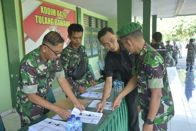 Harianposting,Menggala Tulang Bawang-Kodim 0426 Tulang Bawang, melaksanakan pengukuran pakaian PDH di wilayah jajaran Kodam ll/Sriwijaya yang dilaksanakan oleh panitia dari Denbekang ll/3.B Bandar Lampung, dipimpin Letda Cba Surono, beserta Tim pengkur 6 orang dari PT. Karya Raya Bahagia, bertempat di Makodim 0426/TB, Jl. Lintas Timur Sumatera, KM 113, Kampung Bujung Tenuk, Kecamatan Menggala, Kabupaten Tulang Bawang, Jum’at 13 September 2024.