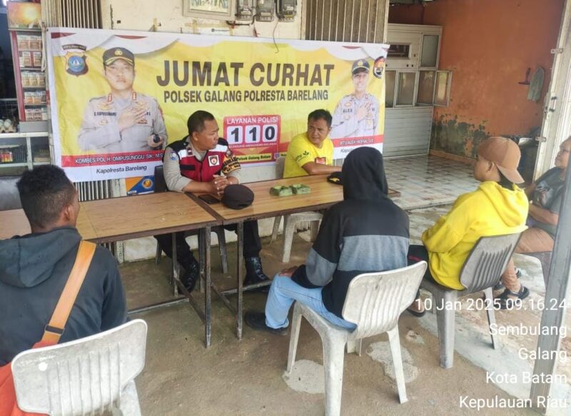 Batam, Harianposting.com- Kepolisian Sektor Galang menggelar Jumat Curhat yang dipimpin oleh Aipda Arinur, bertempat di salah satu warung milik warga Tanjung Banun, Kelurahan Sembulang, Kecamatan Galang, Kota Batam (Jumat, 10/1/2025).