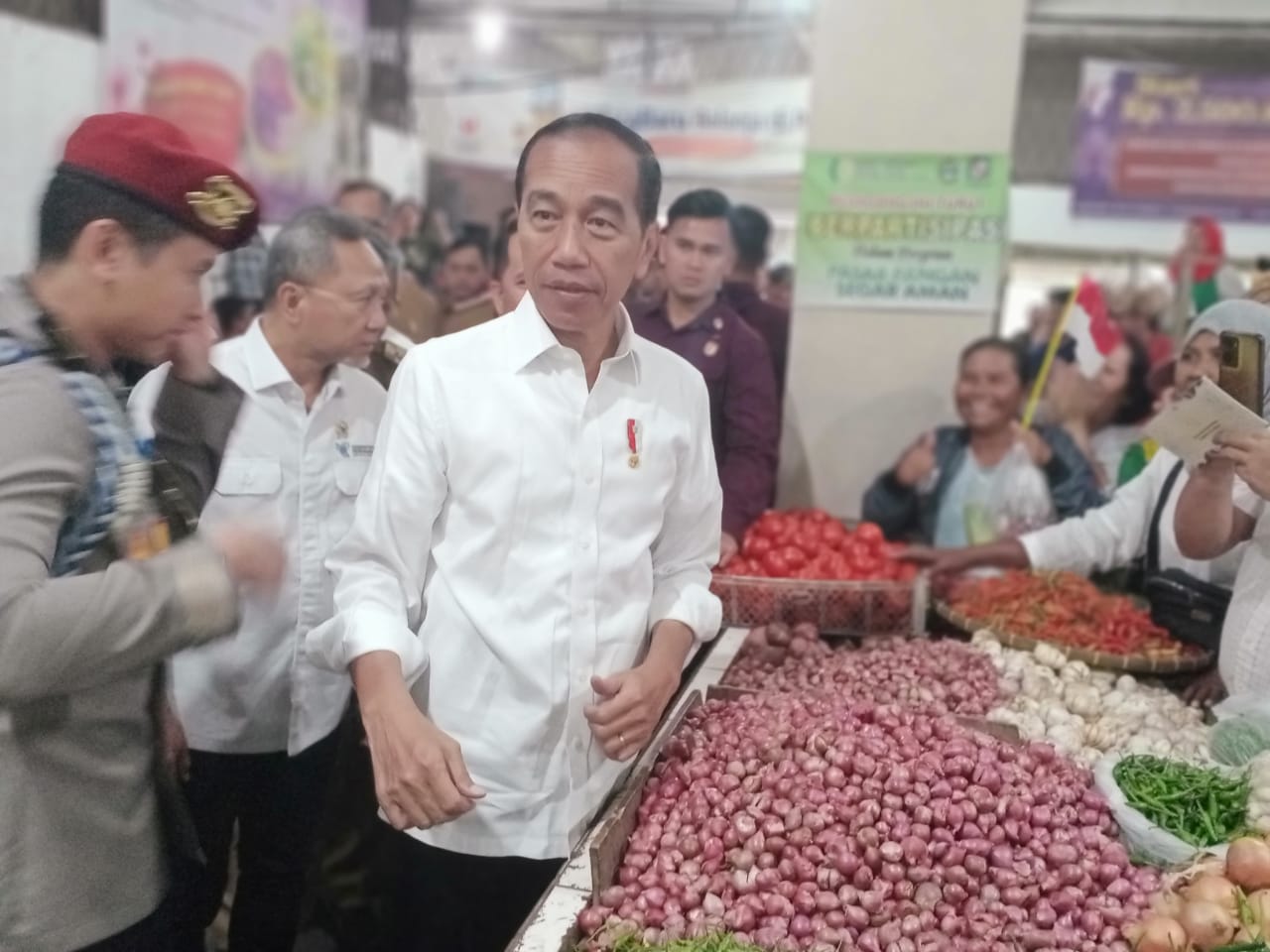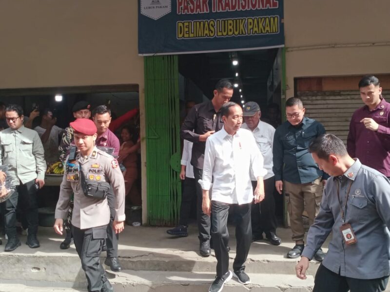 Kurang lebih 1 jam Presiden Joko Widodo sempat berbincang kepada beberapa para pedagang dan masyarakat terkait kebutuhan pangan dan harga pangan saat ini di Pasar delimas Lubuk Pakam.