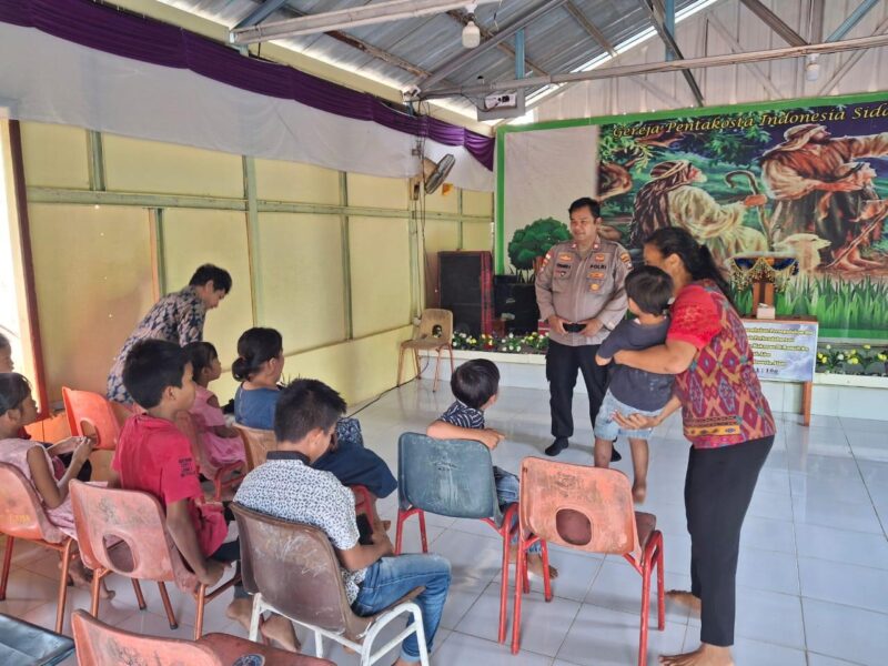 Harian Posting Batam- Polsek Galang kembali menggelar Minggu Kasih di Gereja GDPI Sei Raya, Jalan Trans Barelang, Kelurahan Sembulang, Kecamatan Galang, Kota Batam, Minggu (8/12/2024).