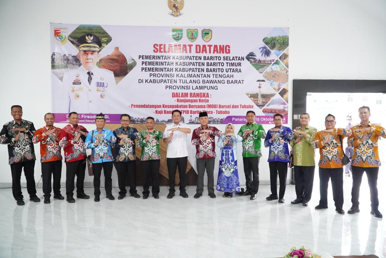 Tubaba–Penjabat (PJ) Bupati Tulang Bawang Barat (Tubaba) menyambut langsung kedatangan Jajaran Pemerintah Kabupaten Barito Selatan, Barito Utara, Barito Timur Provinsi Kalimantan Tengah, di Aula Kantor Dinas Kependudukan dan Pencatatan Sipil. Rabu (16/10/2024)
