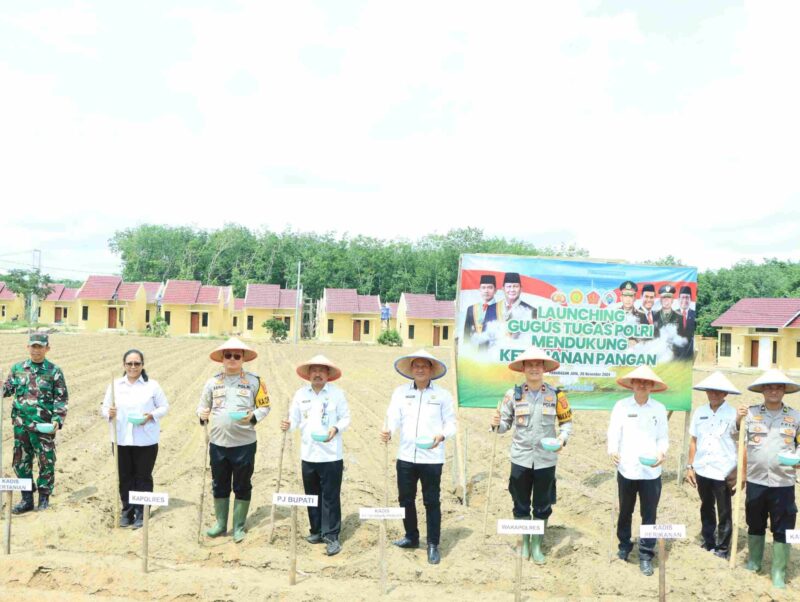 Harian posting Tubaba— Sebagai bagian dari mendukung program Asta Cita Presiden RI, Polres Tubaba bersama Pemda Tubaba melakukan launching gugus tugas polri mendukung ketahanan pangan yang dimulai dengan penanaman bibit jagung di area lahan tidur dijadikan lahan produktif di areal Mapolres Tulang Bawang Barat, Rabu (20/11/2024)