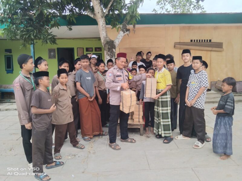 Dalam kegiatan tersebut, Kapolsek Banjar Agung, AKP Irwansyah, S.H., M.H., mewakili Kapolres Tulang Bawang bersama personel Polsek membagikan 50 paket nasi kotak kepada santriwan dan santriwati.