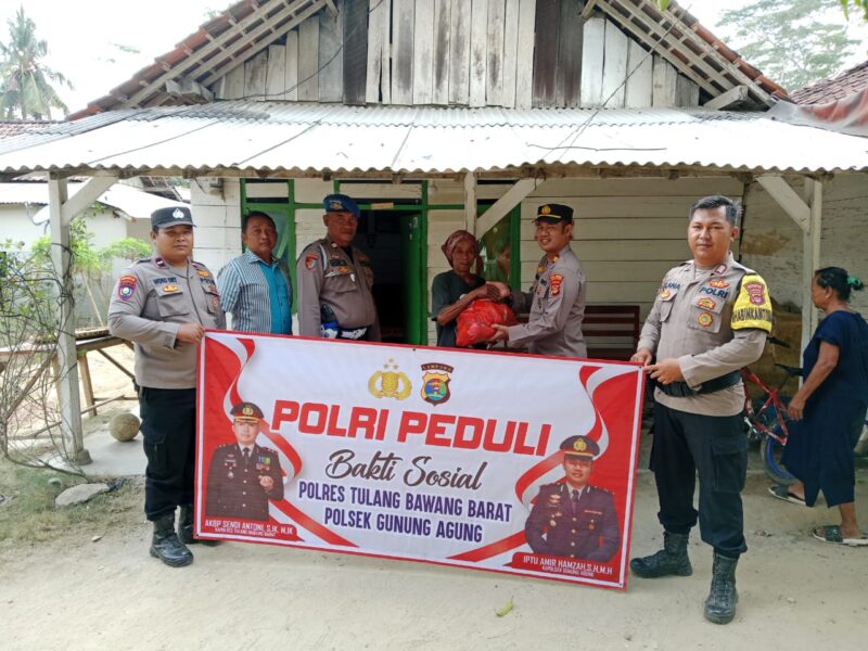 Dalam giat bantuan sosial tersebut Di pimpin Langsung Kapolsek Gunung Agung IPTU Dr. Amir Hamzah,S.H,M.H Mewakili Kapolres Tulang Bawang Barat AKBP Sendi Antoni, S.IK.,M.IK beserta Personil Gunung Agung melaksanakan penyerahan bantuan sosial secara langsung kepada warga yang membutuhkan, yaitu sdr Mbok Inah, Wakiyem, Loso, Darto, dan M. Wes.
