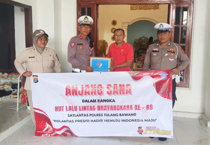 Harianposting,Tulang bawang-Satuan Lalu Lintas (Sat Lantas) Polres Tulang Bawang, Polda Lampung, menggelar kegiatan anjangsana ke rumah purnawirawan dan warakawuri untuk menyambut Hari Ulang Tahun (HUT) Lalu Lintas Bhayangkara ke-69 yang diperingati pada tanggal 22 September 2024 nanti.