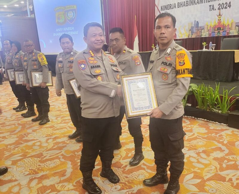 Piagam penghargaan tersebut diserahkan secara langsung oleh Direktur Pembinaan Masyarakat (Dir Binmas) Polda Lampung, Kombes Pol Anang Triarsono, SIK, M.Si, yang dihadiri oleh para Kasat Binmas Polres dan Bhabinkamtibmas jajaran.