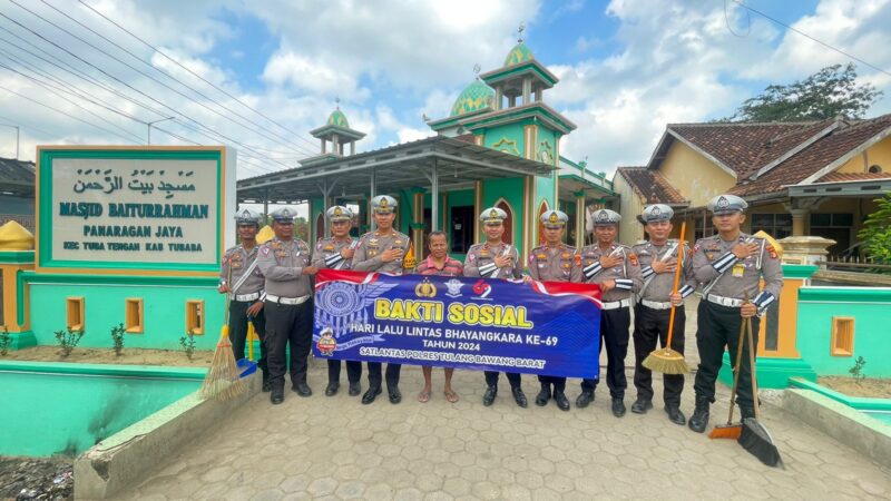 Harianposting,Tulang Bawang Barat–Dalam rangka menyambut HUT Lalu lintas Bhayangkara ke 69, Satuan Lalu lintas Polres Tulang Bawang Barat Polda Lampung melaksanakan kegiatan Bakti Religi yang digelar di Masjid Jami Nurul Huda dan Masjid Baiturrahman Kel Panaragan Jaya Kec.Tulang Bawang Tengah Kab.Tulang Bawang Barat, Sabtu (07/09/2024) Pagi